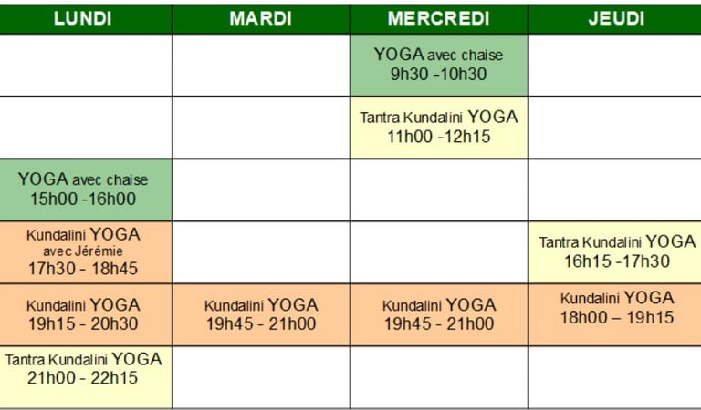 Les cours de yoga manqués ne sont pas remboursés. Ils peuvent être remplacés sur un autre créneau horaire de l’association en fonction des places disponibles, dans un délai n'excédant pas un mois après l'absence.